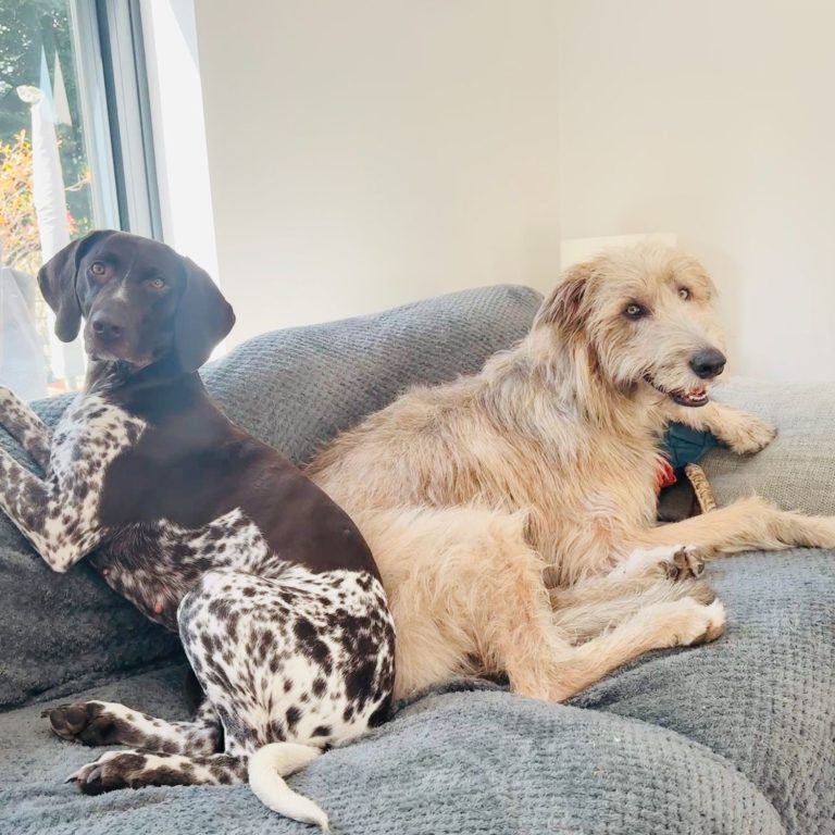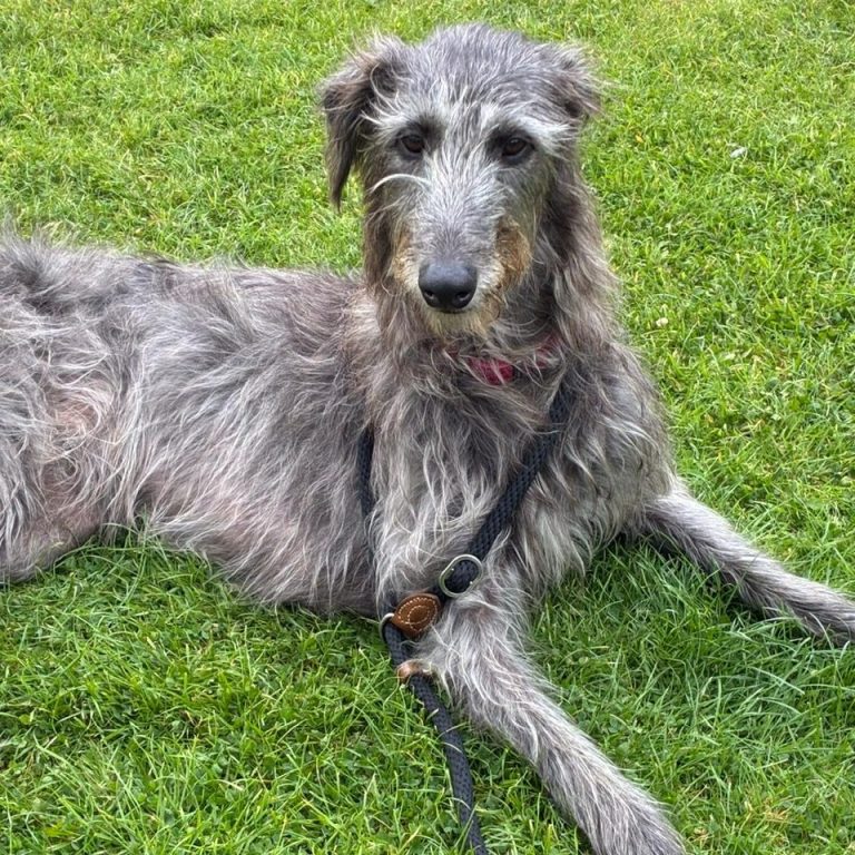 First, there's Sophie, our gentle 2 year old Irish Wolfhound - affectionately known as the gentle giant. She's calm, affectionate, and treats all of our canine guests with kindness and patience.