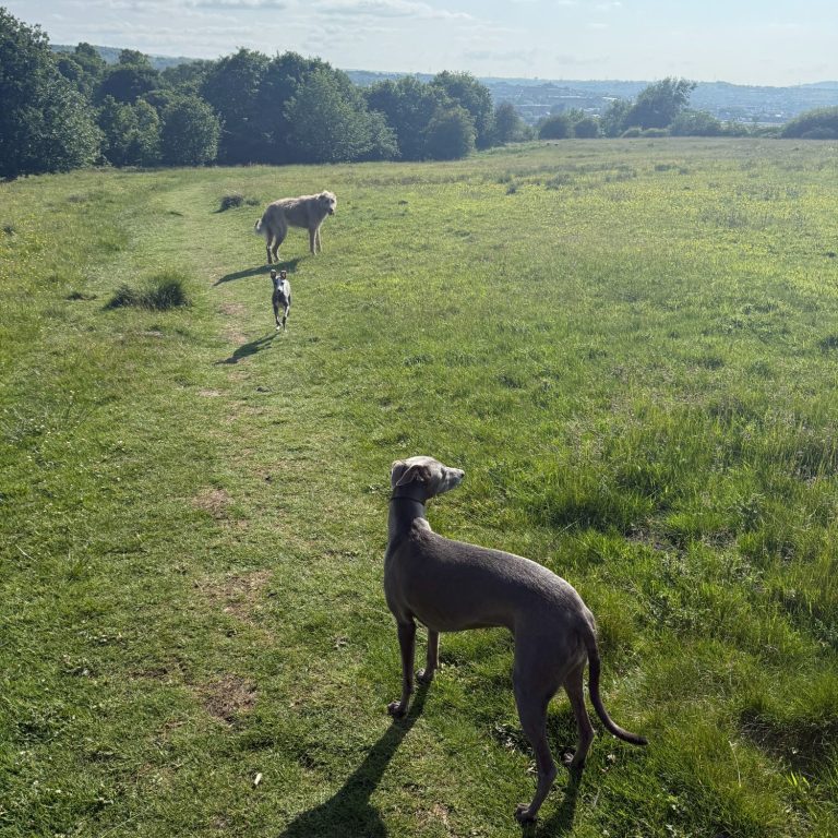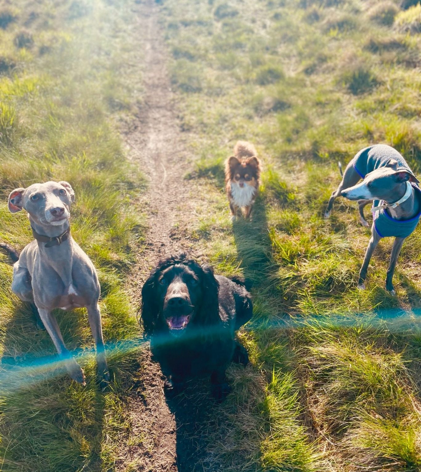 We use a range of local walking routes that go through open fields, woodland areas, and streams, offering dogs a balanced and stimulating walk whilst giving them the chance to experience